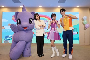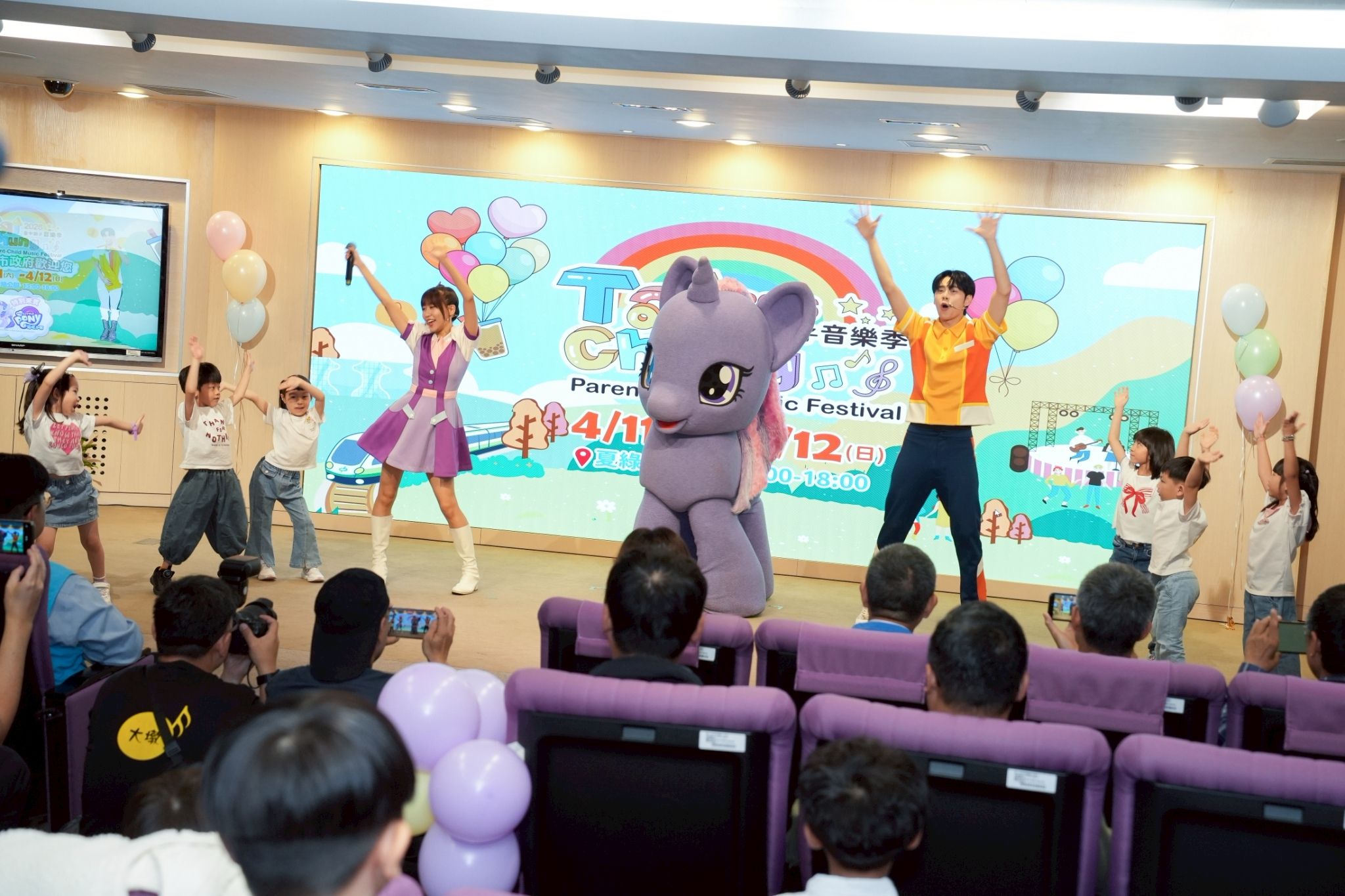 台中市政府新聞局今(1)日舉行記者會,宣布「2026台中親子音樂季」活動開跑。新聞局長欒治誼表示,4月是充滿溫馨與歡樂的月份,適逢兒童節,市府每年都全力以赴舉辦親子音樂季,在市長盧秀燕的鼓勵與支持下,今年活動規模再升級,首度攜手全球知名IP「彩虹小馬」,於4月11日至12日在夏綠地公園打造全台首座5公尺高大型氣偶拍照區,邀請親子合影留念,還有獨家限量小禮可以帶回家。今日記者會邀請YOYO家族南瓜哥哥、天竺鼠姐姐與幼彩幼兒園小朋友熱情開場,帶來活力舞蹈揭開序幕,「彩虹小馬」人氣角色「紫悅」驚喜現身並一起完成啟動儀式,現場氣氛熱絡。