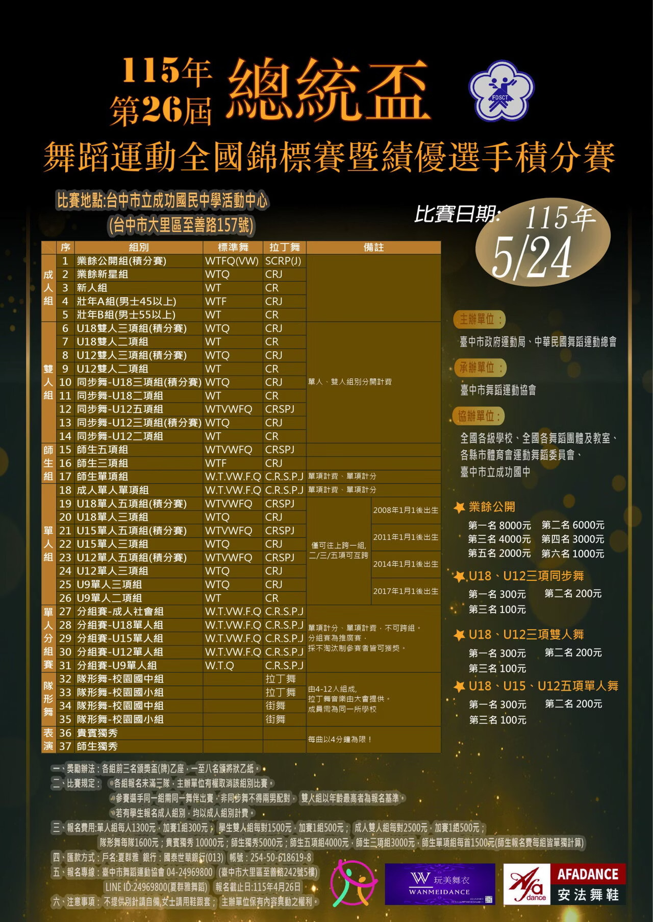 主辦單位:台中市政府運動局、中華民國舞蹈運動總會