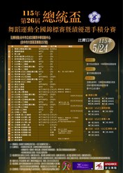 115年第26屆總統盃舞蹈運動全國錦標賽暨績優選手積分賽